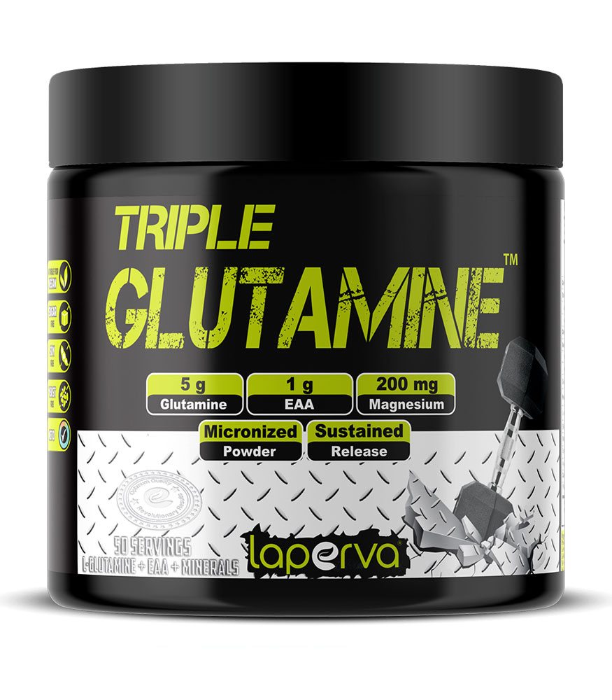 Laperva Triple Glutamine یک مکمل گلوتامین بدون طعم است که به بهبود ریکاوری عضلات، افزایش حجم سلولی و تقویت سیستم ایمنی کمک میکند. این مکمل حاوی ۵ گرم گلوتامین، ۱ گرم آمینو اسیدهای ضروری و ۲۰۰ میلی گرم منیزیم در هر وعده میباشد.